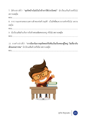 7. มคากลาวทีวา “ทจรตบางไมเปนไรถาเราไดประโยชน” นกเรียนเห็นดวยหรือไม
