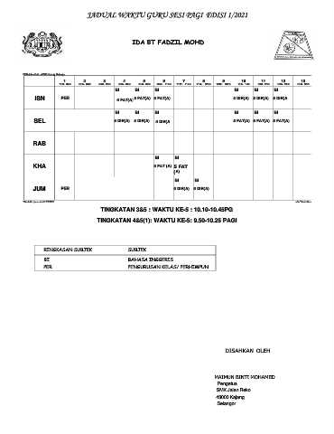 JADUAL WAKTU GURU SESI PAGI EDISI 1/2021
