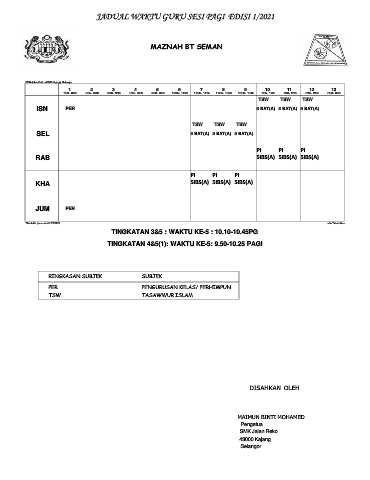 JADUAL WAKTU GURU SESI PAGI EDISI 1/2021