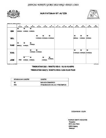 JADUAL WAKTU GURU SESI PAGI EDISI 1/2021