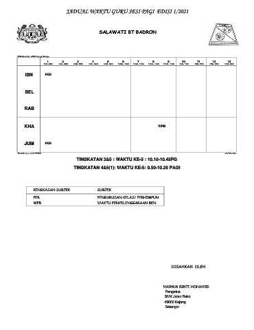 JADUAL WAKTU GURU SESI PAGI EDISI 1/2021