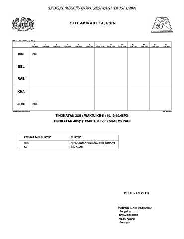 JADUAL WAKTU GURU SESI PAGI EDISI 1/2021