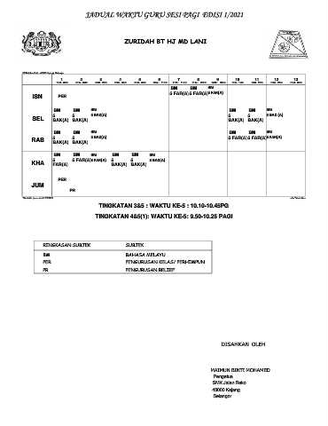 JADUAL WAKTU GURU SESI PAGI EDISI 1/2021