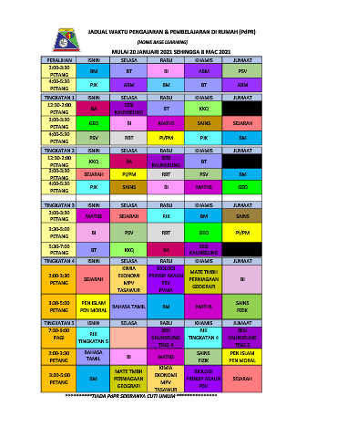 JADUAL WAKTU PENGAJARAN & PEMBELAJARAN DI RUMAH (PdPR)