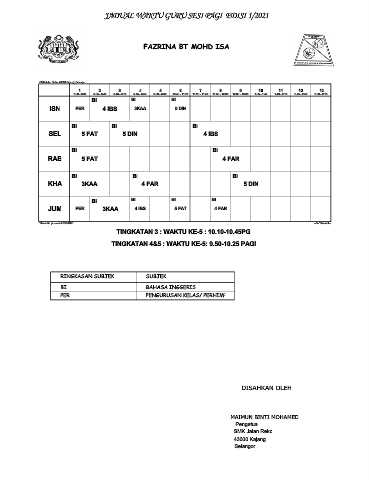 JADUAL WAKTU GURU SESI PAGI EDISI 1/2021