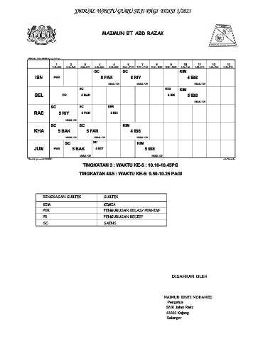 JADUAL WAKTU GURU SESI PAGI EDISI 1/2021