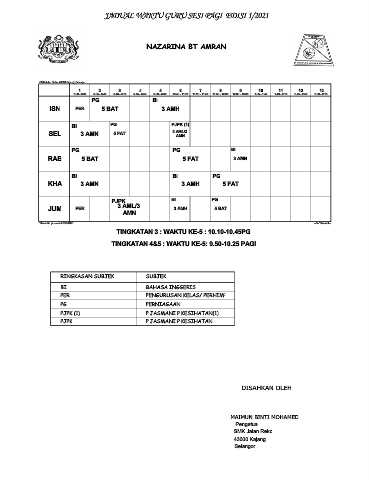 JADUAL WAKTU GURU SESI PAGI EDISI 1/2021
