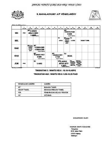 JADUAL WAKTU GURU SESI PAGI EDISI 1/2021