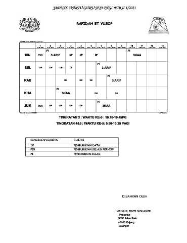 JADUAL WAKTU GURU SESI PAGI EDISI 1/2021