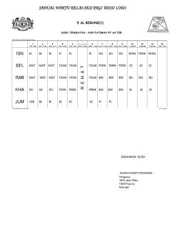 JADUAL WAKTU KELAS SESI PAGI EDISI 1/2021