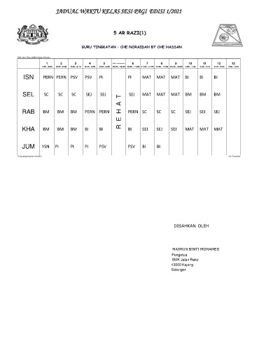 JADUAL WAKTU KELAS SESI PAGI EDISI 1/2021