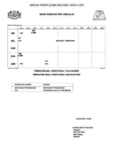 JADUAL WAKTU GURU SESI PAGI EDISI 1/2021