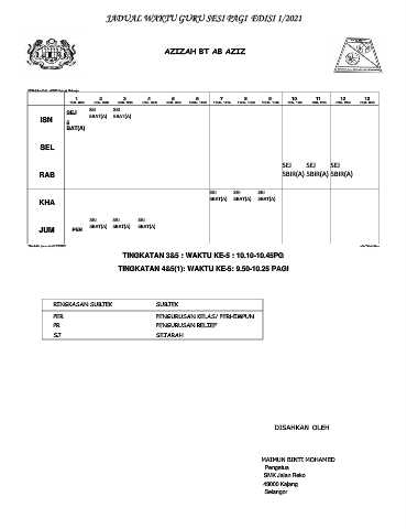 JADUAL WAKTU GURU SESI PAGI EDISI 1/2021
