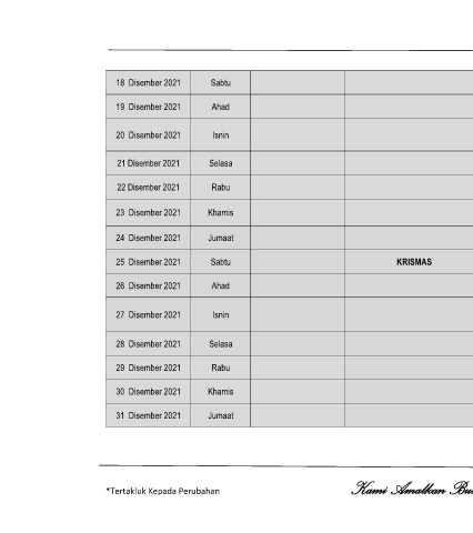 25 Disember 2021 Sabtu KRISMAS