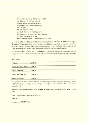 Should you need more information about TC INN Hotel, Please do not hesitate to contact or call "TC INN