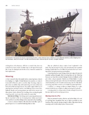 flat. it may be damaged, and in this event. it must be marked for footing. Usually there is a set ofbitts forward and aft of each moor-