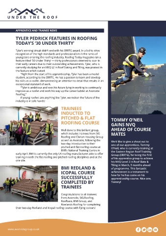 training in both the flat roofing and pitched roofing disciplines and at the of his apprentice group to achieve