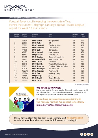 AVONSIDE FANTASY FOOTBALL UPDATE!