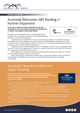 delighted to be able to announce that Taylor Roofing are now part of the Avonside Group.”