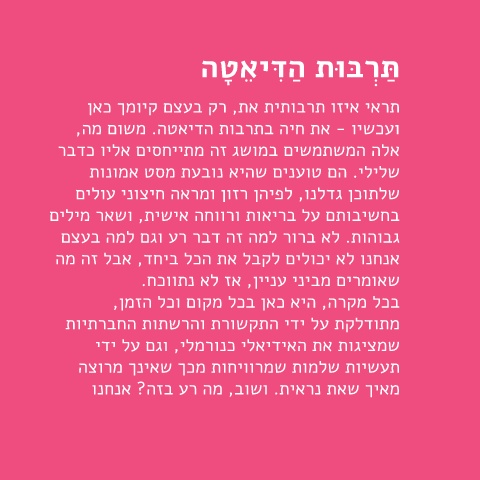 ועכשיו -את חיה בתרבות הדיאטה .משום מה,