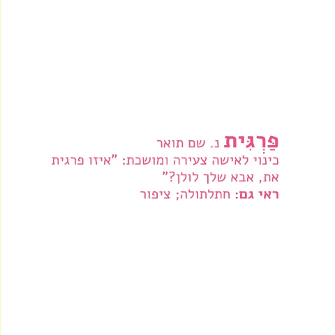 ּ ַפ ְרּ ִגית נ .שם תואר כינוי לאישה צעירה ומושכת" :איזו פרגית את ,אבא שלך לולן?" ראי גם :חתלתולה; ציפור