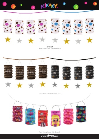 2003621 Kağıt Fener Sıralı Süs Pembe Mavi 2003620 Kağıt Fener Sıralı Süs Siyah Altın 2000844 Kağıt Gemici Fener 10lu Desenli