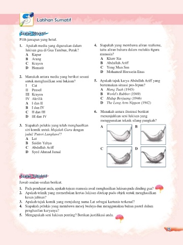 untuk menghasilkan seni lukisan? 5. Apakah tajuk karya Abdullah Ariff yang