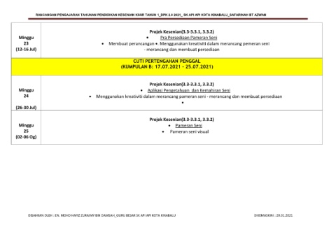 RANCANGAN PENGAJARAN TAHUNAN PENDIDIKAN KESENIAN KSSR TAHUN 1_DPK 2.0 2021_ SK API API KOTA KINABALU_SAFARINAH BT AZWAN
