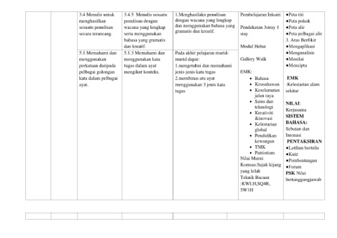 3.4 Menulis untuk 3.4.5 Menulis sesuatu 1.Menghasilakn penulisan Pembelajaran Inkuiri ●Peta titi