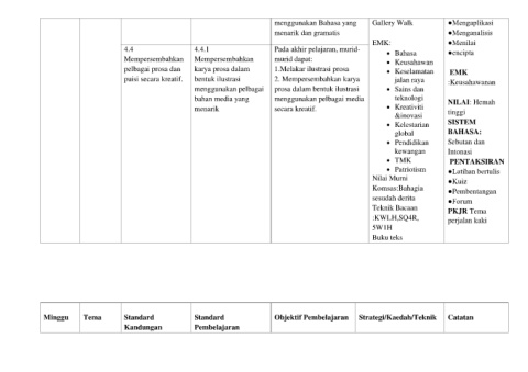 4.4 4.4.1 Pada akhir pelajaran, murid- • Bahasa ●encipta