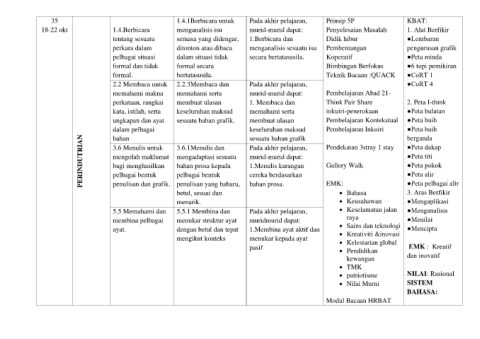 35 1.4.1Berbicara untuk Pada akhir pelajaran, Prinsip 5P KBAT: