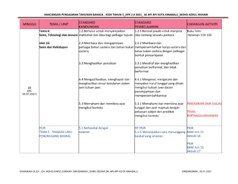 RANCANGAN PENGAJARAN TAHUNAN BAHASA KSSR TAHUN 5_DPK 2.0 2021_ SK API API KOTA KINABALU_MOHD AZRUL HISHAM