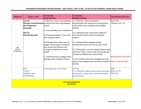 RANCANGAN PENGAJARAN TAHUNAN BAHASA KSSR TAHUN 5_DPK 2.0 2021_ SK API API KOTA KINABALU_MOHD AZRUL HISHAM