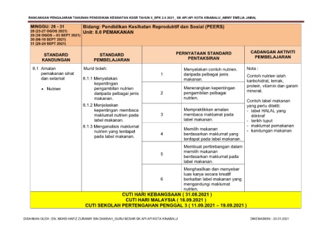 28 (23-27 OGOS 2021) Unit: 8.0 PEMAKANAN