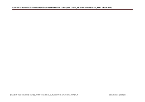 RANCANGAN PENGAJARAN TAHUNAN PENDIDIKAN KESIHATAN KSSR TAHUN 5_DPK 2.0 2021_ SK API API KOTA KINABALU_AMMY EMELIA JAMAL DISAHKAN OLEH : EN. MOHD HAFIZ ZURAIMY BIN DAMSAH_GURU BESAR SK API APIKOTA KINABALU DIKEMASKINI : 20.01.2021