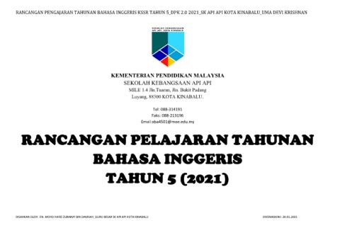 RANCANGAN PENGAJARAN TAHUNAN BAHASA INGGERIS KSSR TAHUN 5_DPK 2.0 2021_SK API API KOTA KINABALU_UMA DEVI KRISHNAN