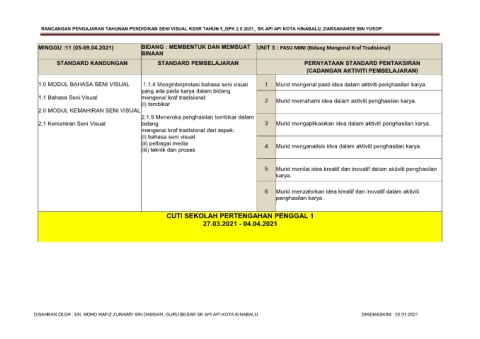 RANCANGAN PENGAJARAN TAHUNAN PENDIDIKAN SENI VISUAL KSSR TAHUN 5_DPK 2.0 2021_ SK API API KOTA KINABALU_DARSAHANEE BIN YUSOP