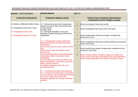 RANCANGAN PENGAJARAN TAHUNAN PENDIDIKAN SENI VISUAL KSSR TAHUN 5_DPK 2.0 2021_ SK API API KOTA KINABALU_DARSAHANEE BIN YUSOP