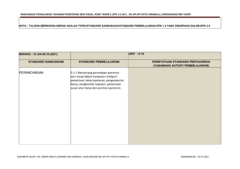 RANCANGAN PENGAJARAN TAHUNAN PENDIDIKAN SENI VISUAL KSSR TAHUN 5_DPK 2.0 2021_ SK API API KOTA KINABALU_DARSAHANEE BIN YUSOP