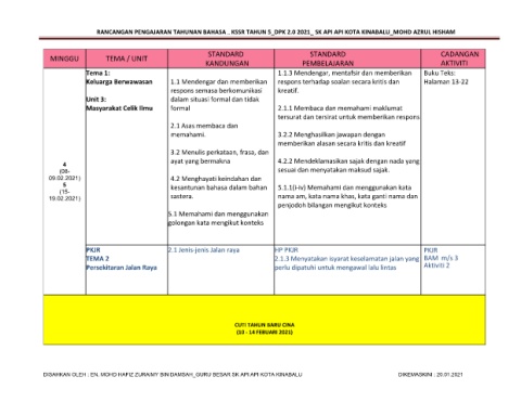 RANCANGAN PENGAJARAN TAHUNAN BAHASA KSSR TAHUN 5_DPK 2.0 2021_ SK API API KOTA KINABALU_MOHD AZRUL HISHAM
