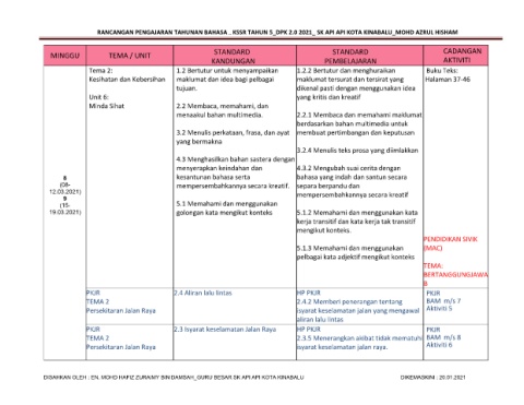 RANCANGAN PENGAJARAN TAHUNAN BAHASA KSSR TAHUN 5_DPK 2.0 2021_ SK API API KOTA KINABALU_MOHD AZRUL HISHAM