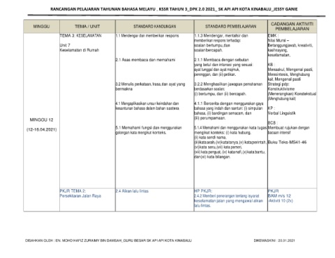 RANCANGAN PELAJARAN TAHUNAN BAHASA MELAYU MELAYU KSSR TAHUN 3_DPK 2.0 2021_ SK API API KOTA KINABALU_JESSY GANIE