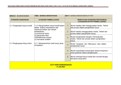 RANCANGAN PENGAJARAN TAHUNAN PENDIDIKAN SENI VISUAL KSSR TAHUN 3_DPK 2.0 2021_ SK API API KOTA KINABALU_NORSILAWATI_SARIDAH