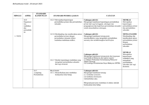 MINGGU ASPEK KANDUNGAN STANDARD PEMBELAJARAN CATATAN