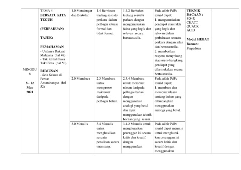TEMA 4 1.0 Mendengar 1.4 Berbicara 1.4.2 Berbahas Pada akhir PdPc TEKNIK