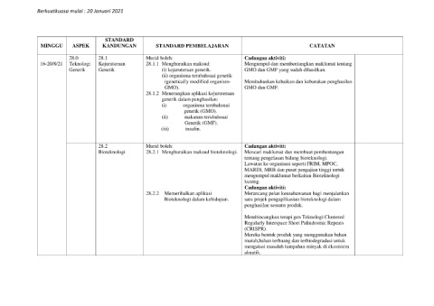 MINGGU ASPEK KANDUNGAN STANDARD PEMBELAJARAN CATATAN