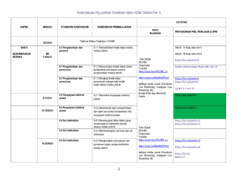 RANCANGAN PELAJARAN TAHUNAN KIMIA KSSM TINGKATAN 5