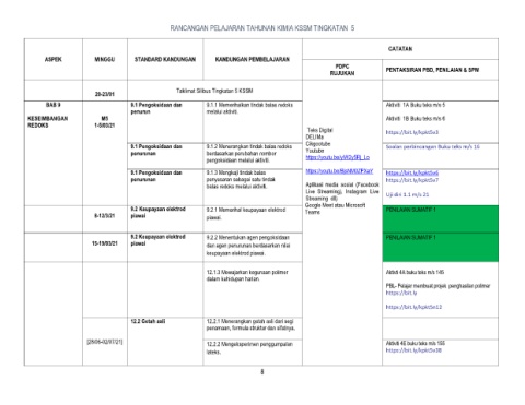 RANCANGAN PELAJARAN TAHUNAN KIMIA KSSM TINGKATAN 5