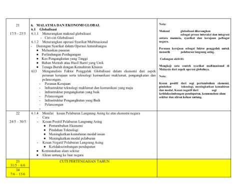21 6. MALAYSIA DAN EKONOMI GLOBAL Nota: