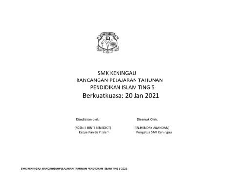 SMK KENINGAU: RANCANGAN PELAJARAN TAHUNAN PENDIDIKAN ISLAM TING 5 2021